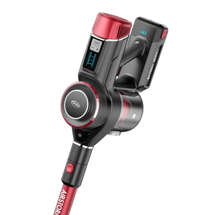 The AIRSTORM1 is easily controlled via a simple squeeze and release power trigger on the handle, and comes with accessories that include a telescopic crevice tool, 2-in-1 dusting and upholstery brush and a motorised turbo brush.