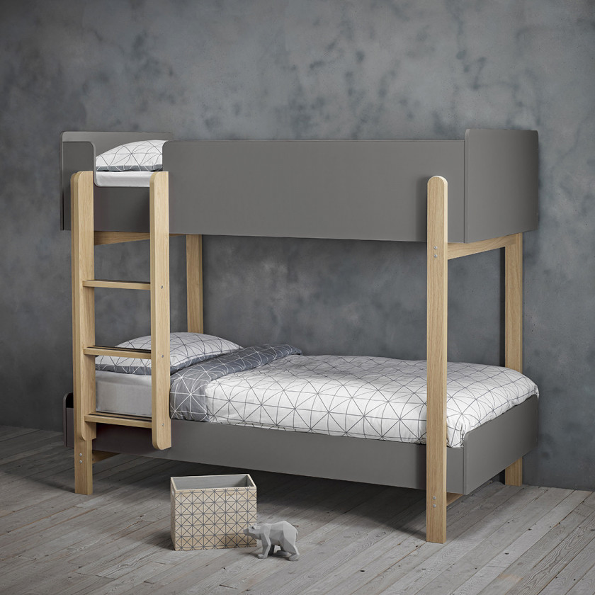 The Hero bunk bed is superb addition to any bedroom, whether for younger children or teens. This trendy bunk bed has a unique fresh design and comes finished in matt grey/oak or matt white/oak.