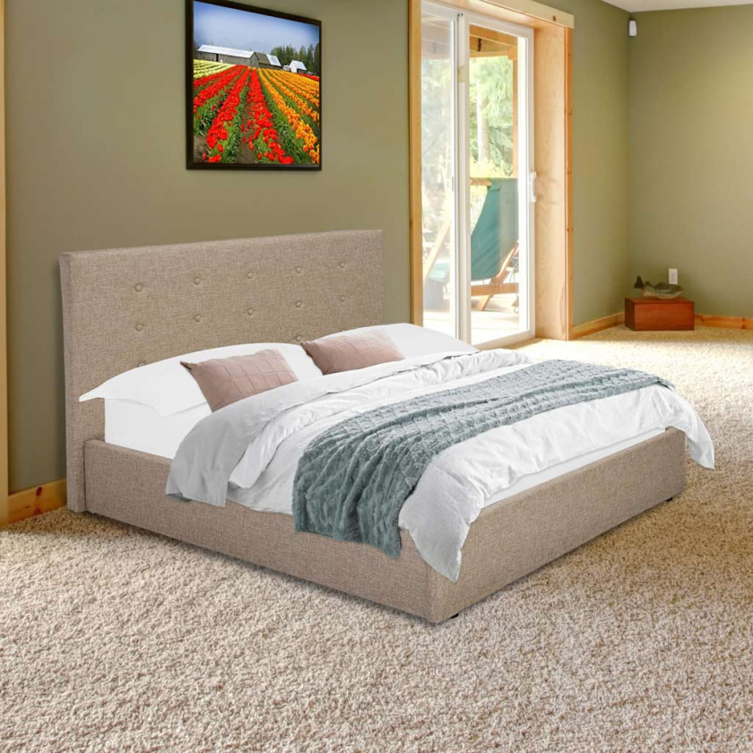 The Lucca in Soft Grey or Beige offers a luxury feel at a very comfortable price. Enveloped in a classic linen-type upholstered with coordinating button detail to the headboard, this simple and understated bed frame wouldn't look out of place in a contemporary or vintage designed space. When space is at a premium, this versatile ottoman bed provides an impressive storage capacity simply by lifting the hydraulic assisted mattress base ensuring the clean lines and subtle finish of this bed will make a tranquil space out of any bedroom. It's available with either a standard or ottoman base.